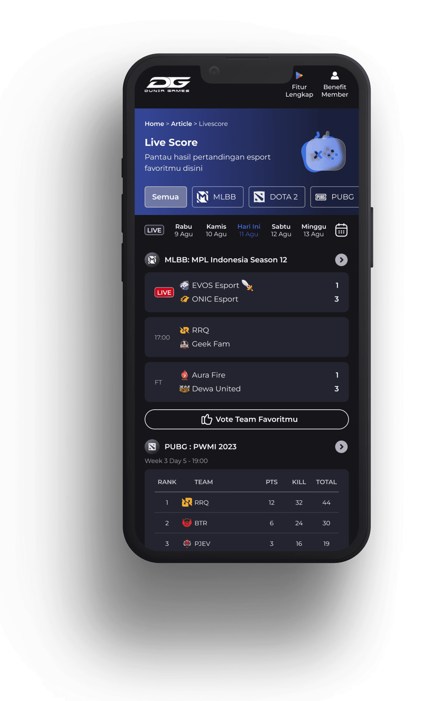 Live scores and tournament tracking for hardcore fans. Creates reason to return during tournaments.
