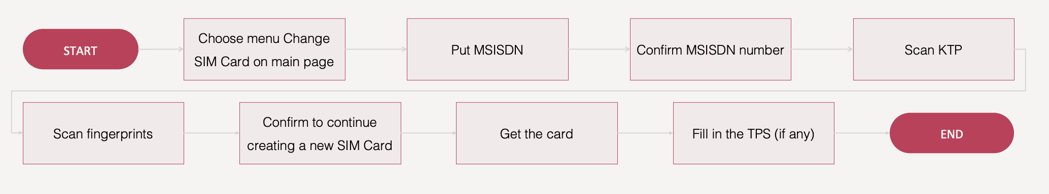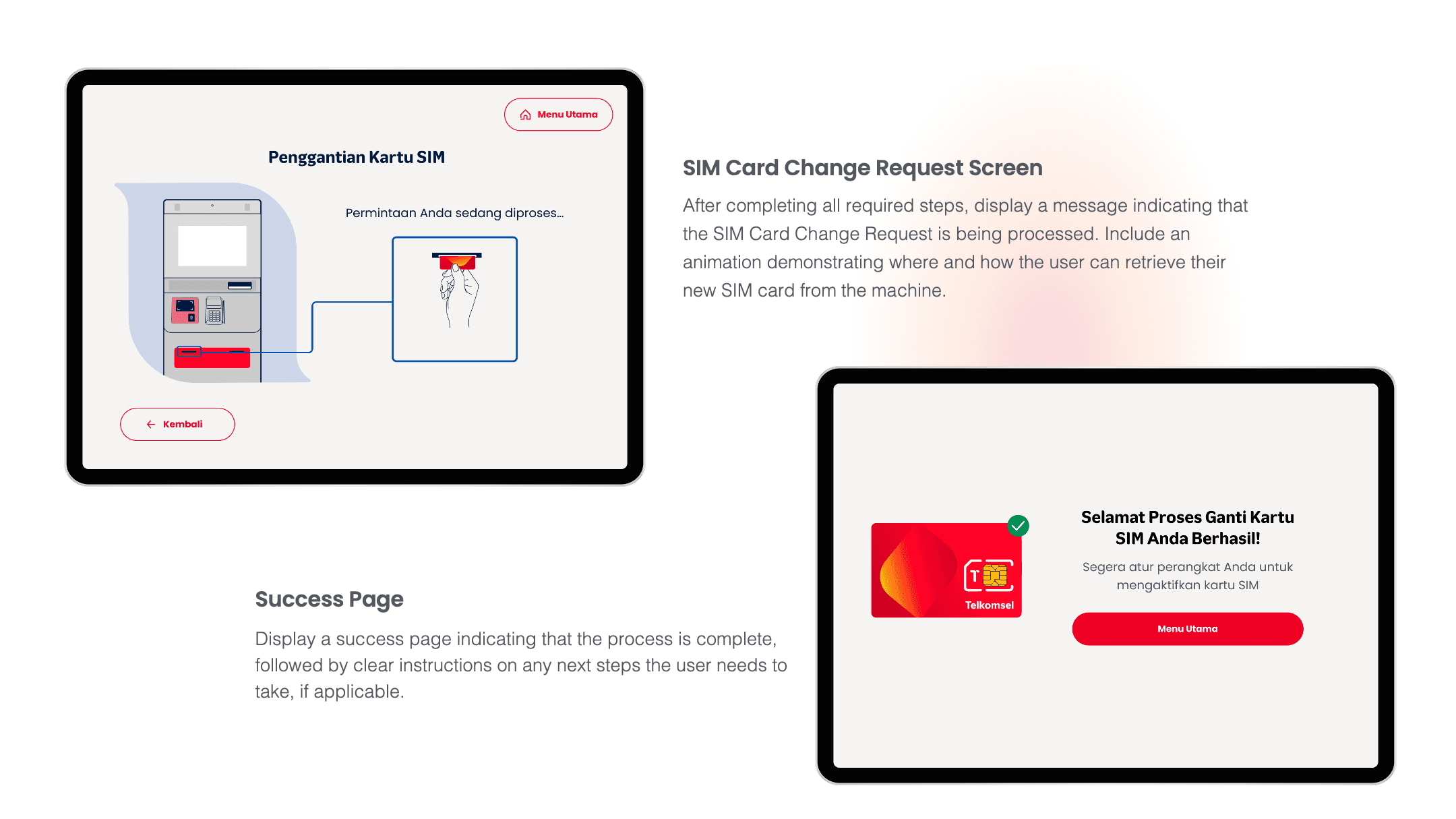 The complete journey from selecting the service to receiving the new SIM card. Each step was carefully considered to minimize friction and guide users smoothly through the process.