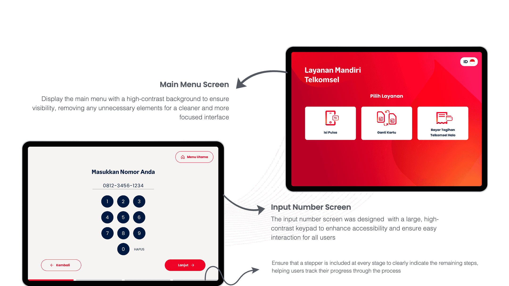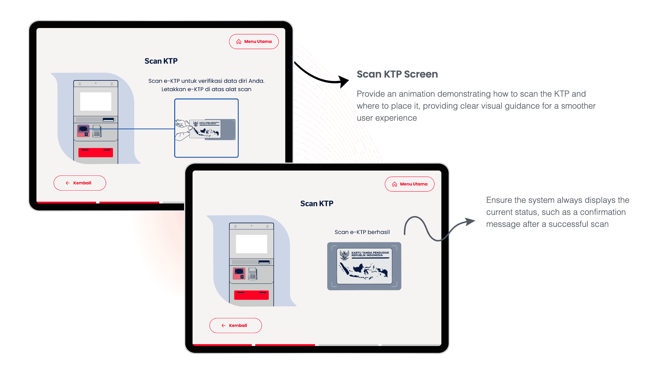 After weeks of research and iterations, here's the final interface that's now live on 382 kiosks across Indonesia. Every element was carefully crafted to reduce cognitive load and guide users effortlessly through their transactions.
